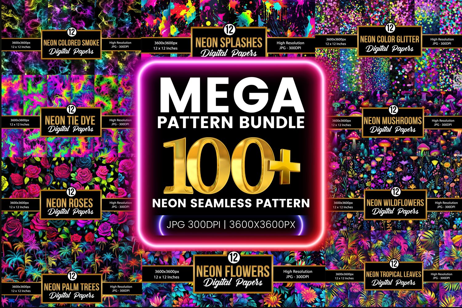 Neon Seamless Pattern Mega Bundle