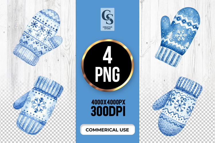 4 Blue Winter Mittens Clipart Sublimation PNG Files Perfect for Greeting Cards, Invitations, Junk Journal, Party Decor, Scrapbooking and many other craft projects.