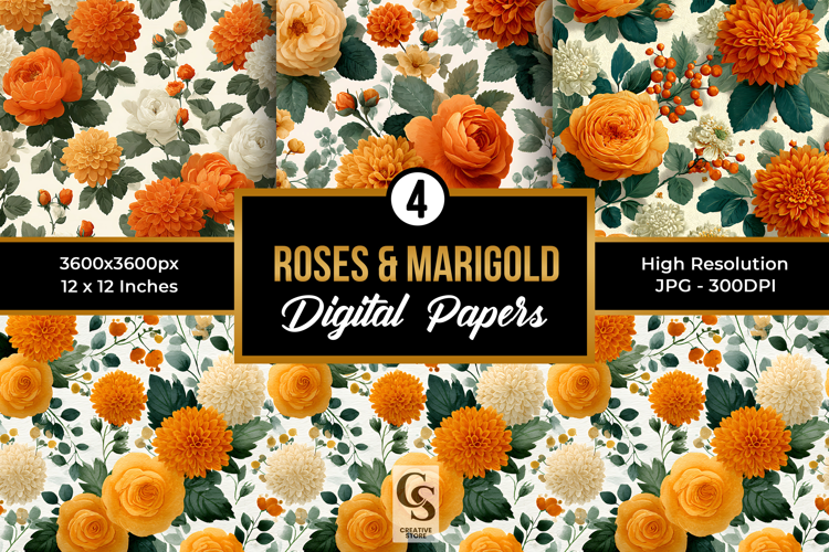 Similar Design Products to Orange Roses and Marigold Flowers Digital Paper