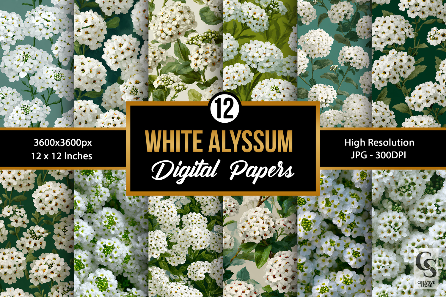 Similar Design Products to White Alyssum Flowers Digital Paper