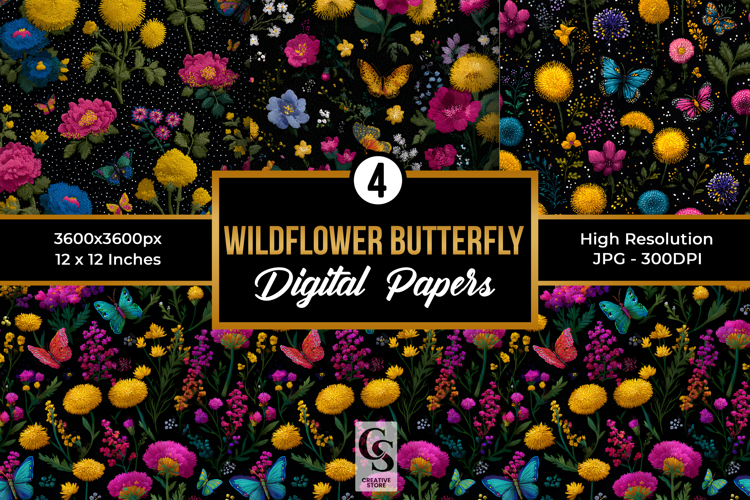 Similar Design Products to Wildflowers and Butterflies Digital Paper