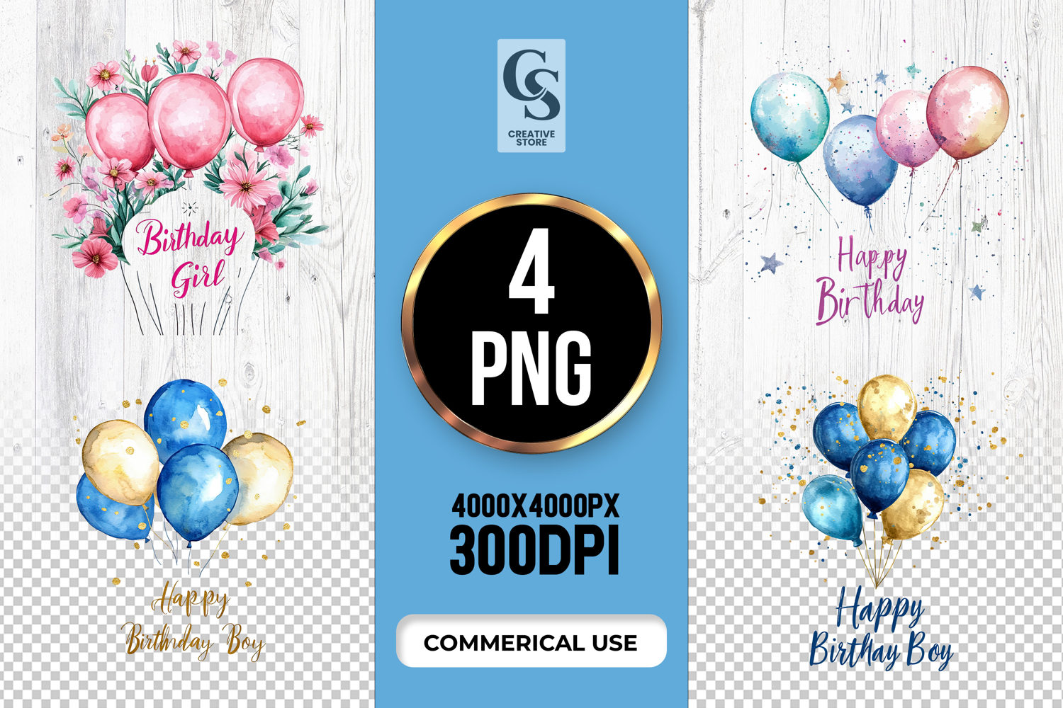 4 Birthday Boy and Girl Balloon Clipart Sublimation PNG Files Perfect for Greeting Cards, Invitations, Junk Journal, Party Decor, Scrapbooking and many other craft projects.