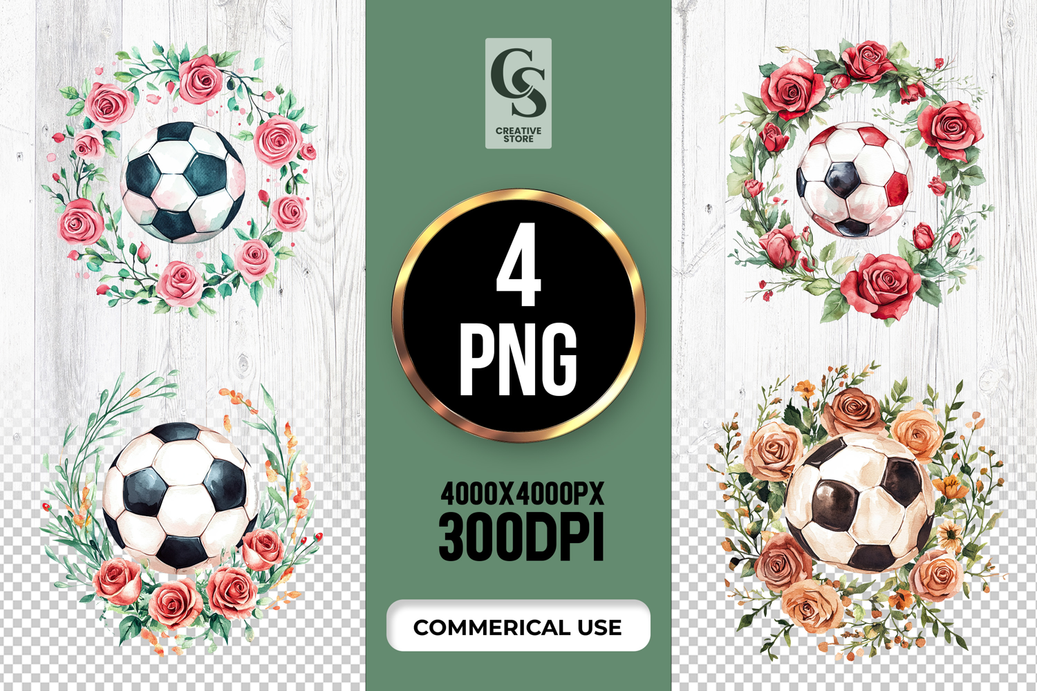 4 Vintage Rose Soccer Ball Clipart Sublimation PNG Files Perfect for Greeting Cards, Invitations, Junk Journal, Party Decor, Scrapbooking and many other craft projects.