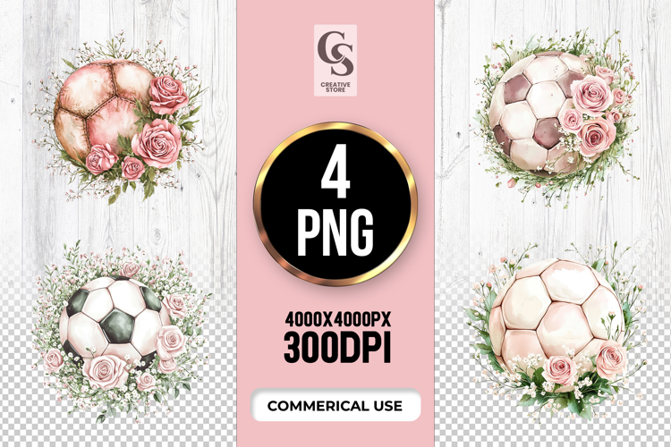 4 Blush Floral Soccer Ball Clipart Sublimation PNG Files Perfect for Greeting Cards, Invitations, Junk Journal, Party Decor, Scrapbooking and many other craft projects.