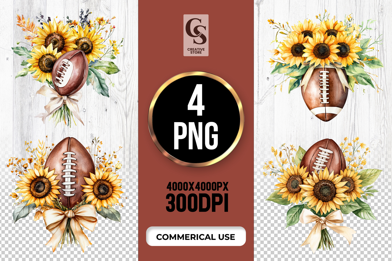 4 Sunflower Football Bouquet Clipart Sublimation PNG Files Perfect for Greeting Cards, Invitations, Junk Journal, Party Decor, Scrapbooking and many other craft projects.
