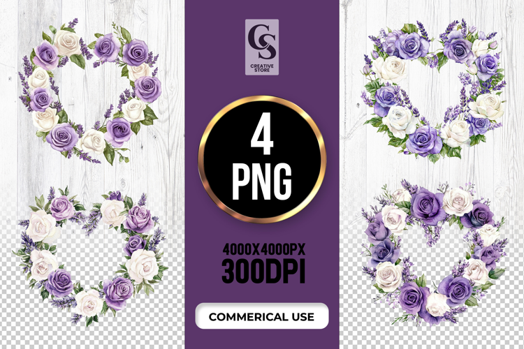 4 Purple Lavender Rose Heart Clipart Sublimation PNG Files Perfect for Greeting Cards, Invitations, Junk Journal, Party Decor, Scrapbooking and many other craft projects.