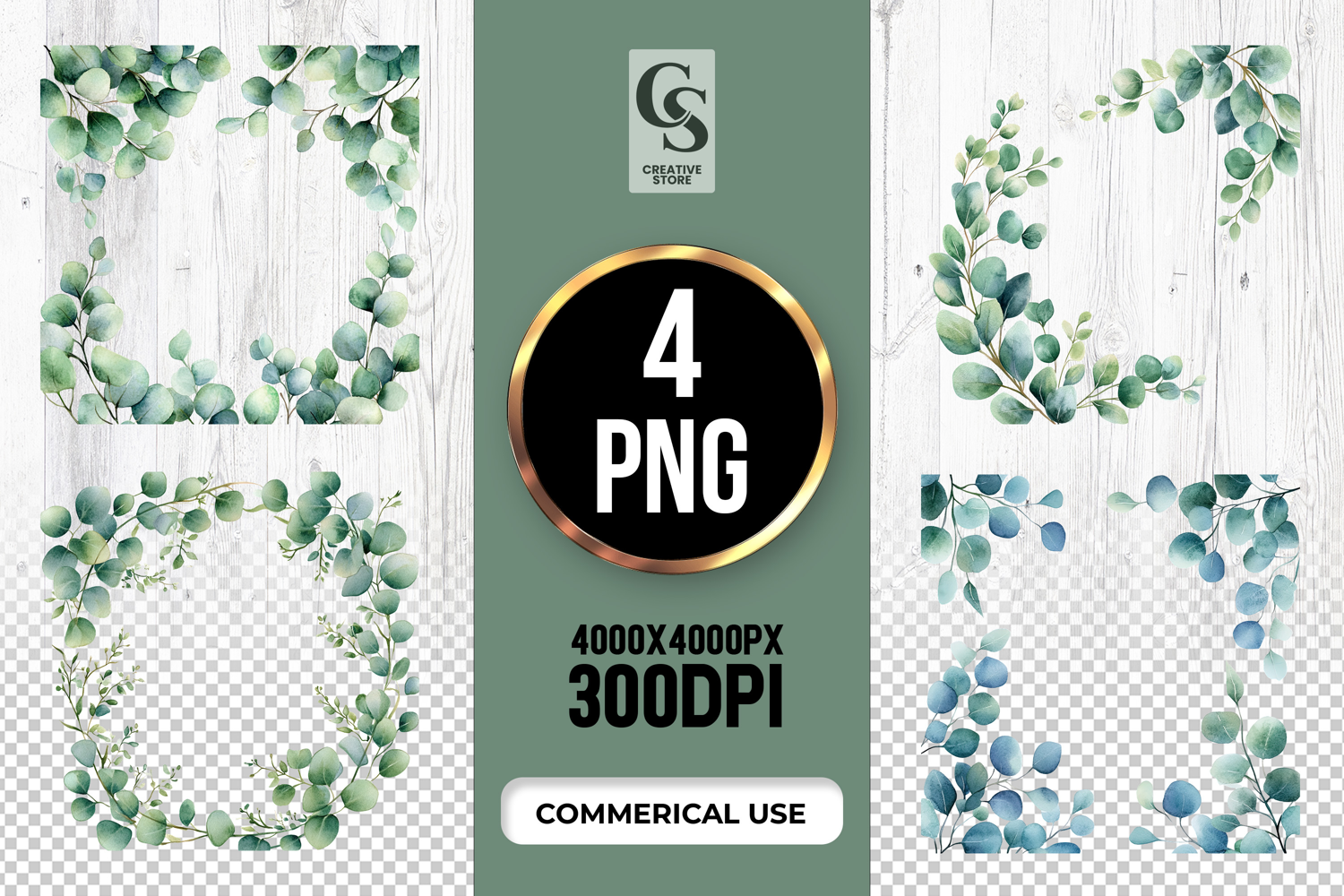 4 Eucalyptus Leaf Frame Clipart Sublimation PNG Files Perfect for Greeting Cards, Invitations, Junk Journal, Party Decor, Scrapbooking and many other craft projects.