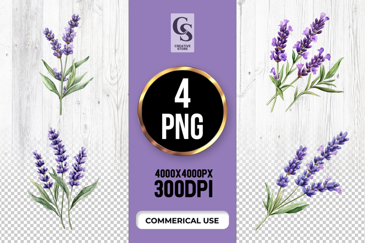 4 Lavender Flower Clipart Sublimation PNG Files Perfect for Greeting Cards, Invitations, Junk Journal, Party Decor, Scrapbooking and many other craft projects.