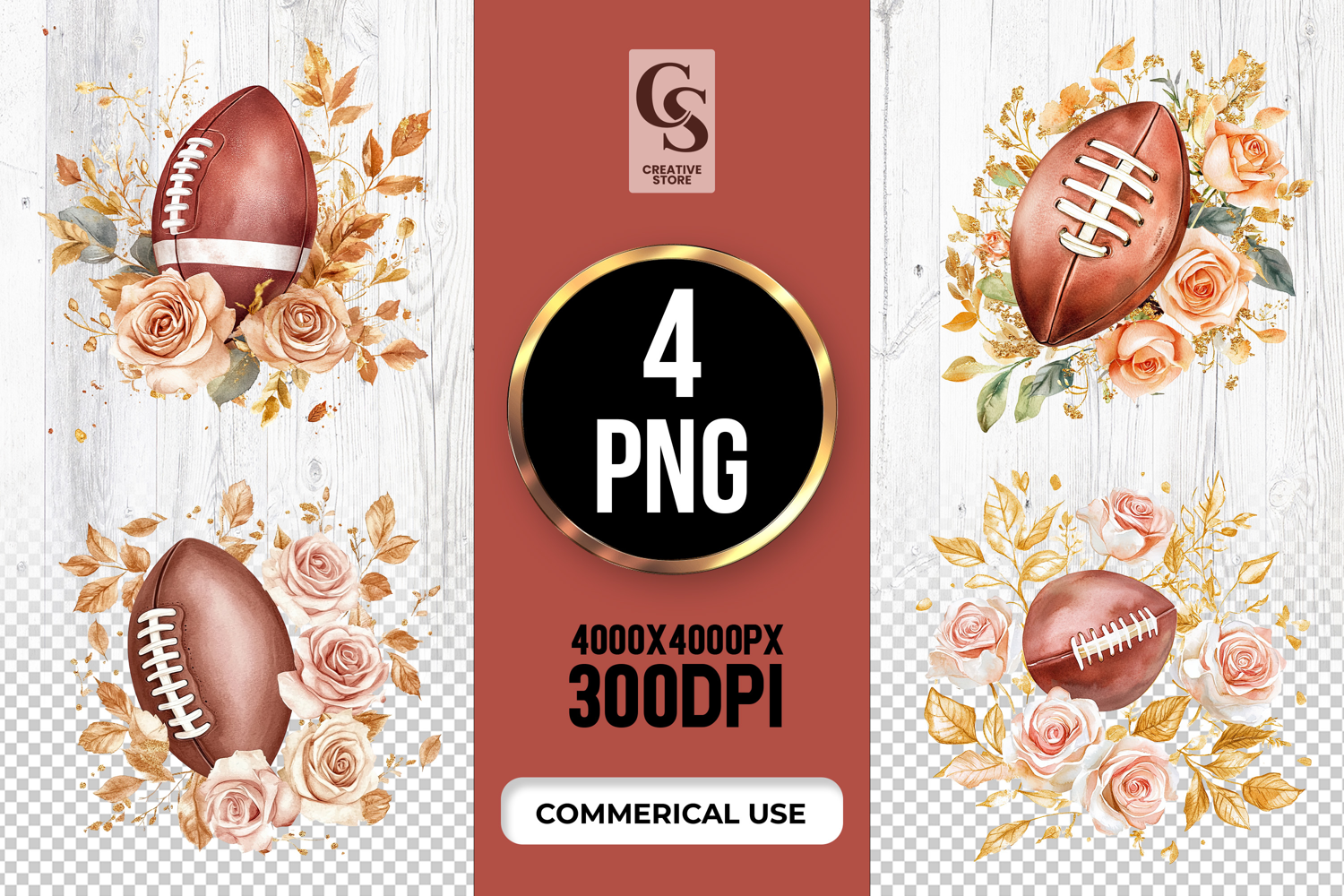 4 Football Rose Floral Sublimation PNG Files Perfect for Greeting Cards, Invitations, Junk Journal, Party Decor, Scrapbooking and many other craft projects.