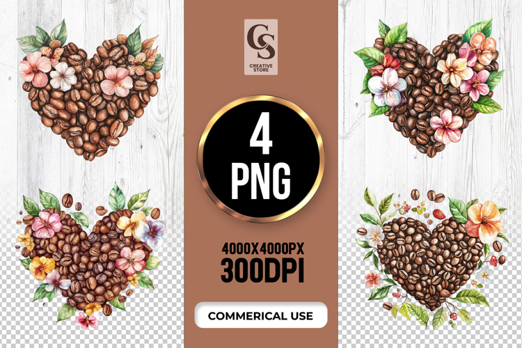 4 Coffee Bean Heart Floral clipart sublimation PNGFiles Perfect for Greeting Cards, Invitations, Junk Journal, Party Decor, Scrapbooking and many other craft projects.