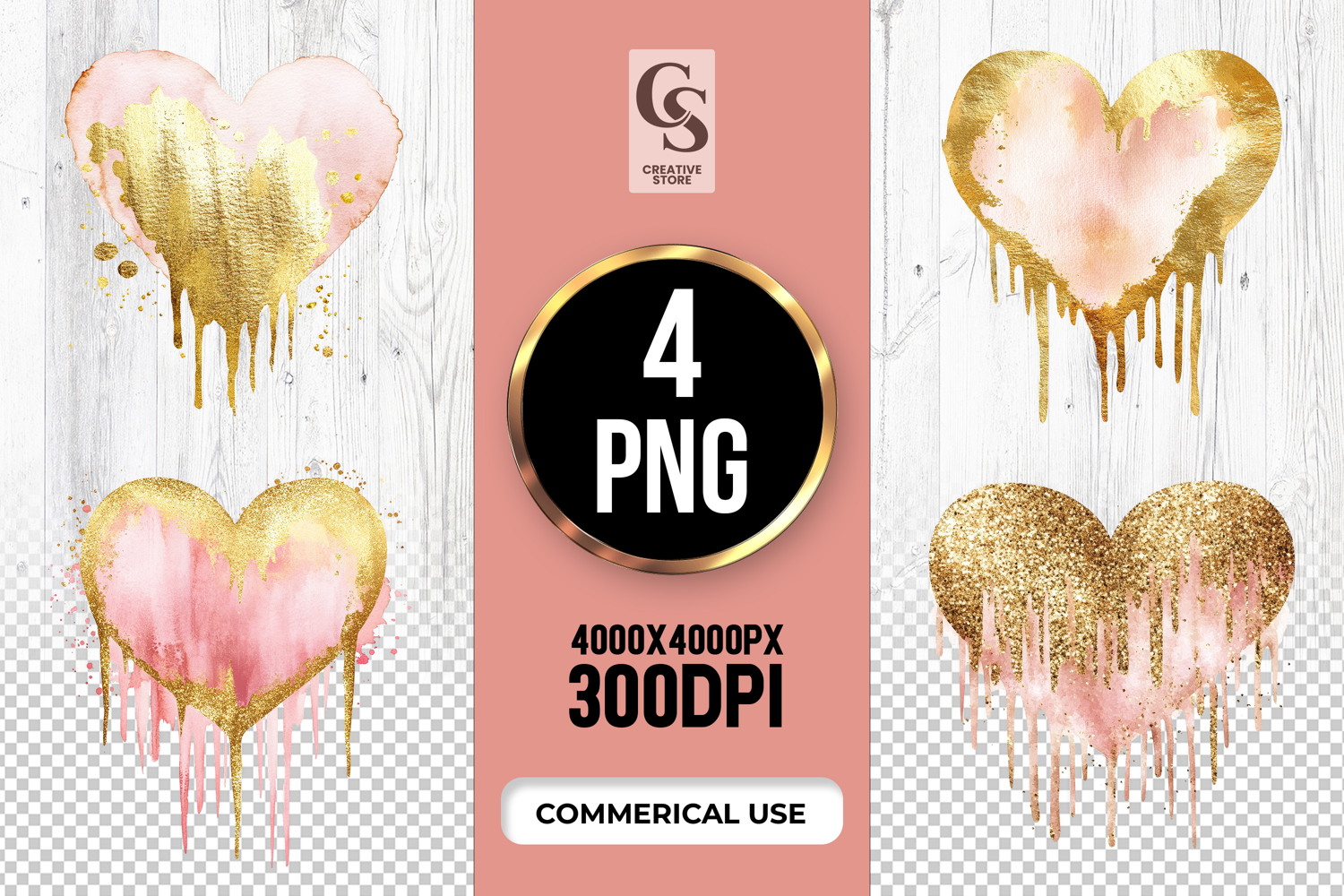 4 Gold Dripping Watercolor Heart Clipart Sublimation PNG Files Perfect for Greeting Cards, Invitations, Junk Journal, Party Decor, Scrapbooking and many other craft projects.