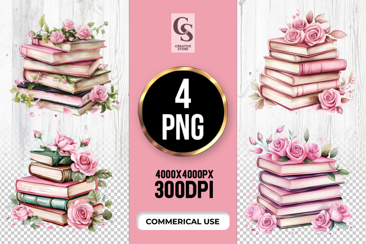 4 Rose Flower Books Clipart PNG Files Perfect for Greeting Cards, Invitations, Junk Journal, Party Decor, Scrapbooking and many other craft projects.