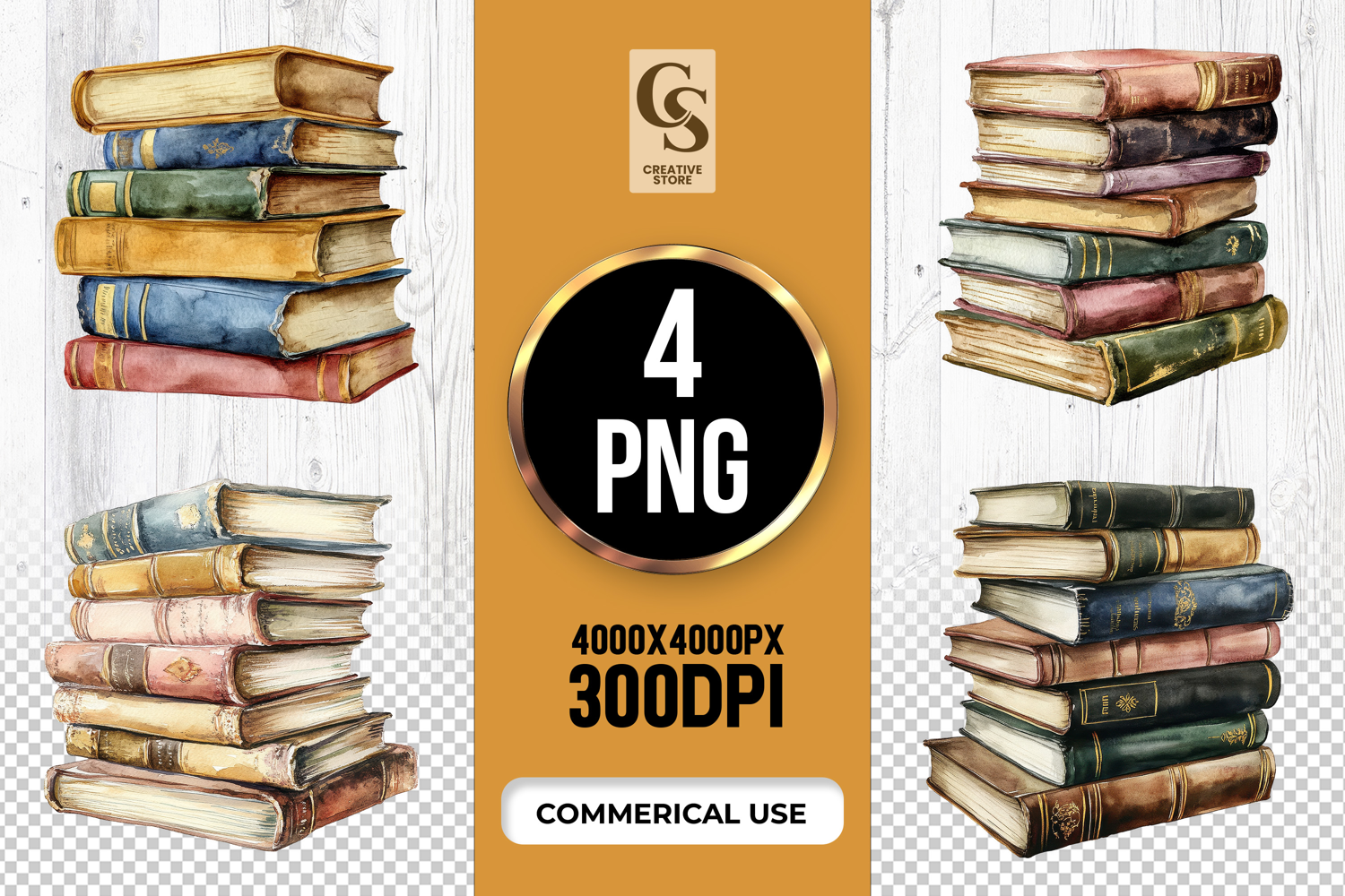 4 Vintage Book Stack Clipart Sublimation PNG Files Perfect for Greeting Cards, Invitations, Junk Journal, Party Decor, Scrapbooking and many other craft projects.