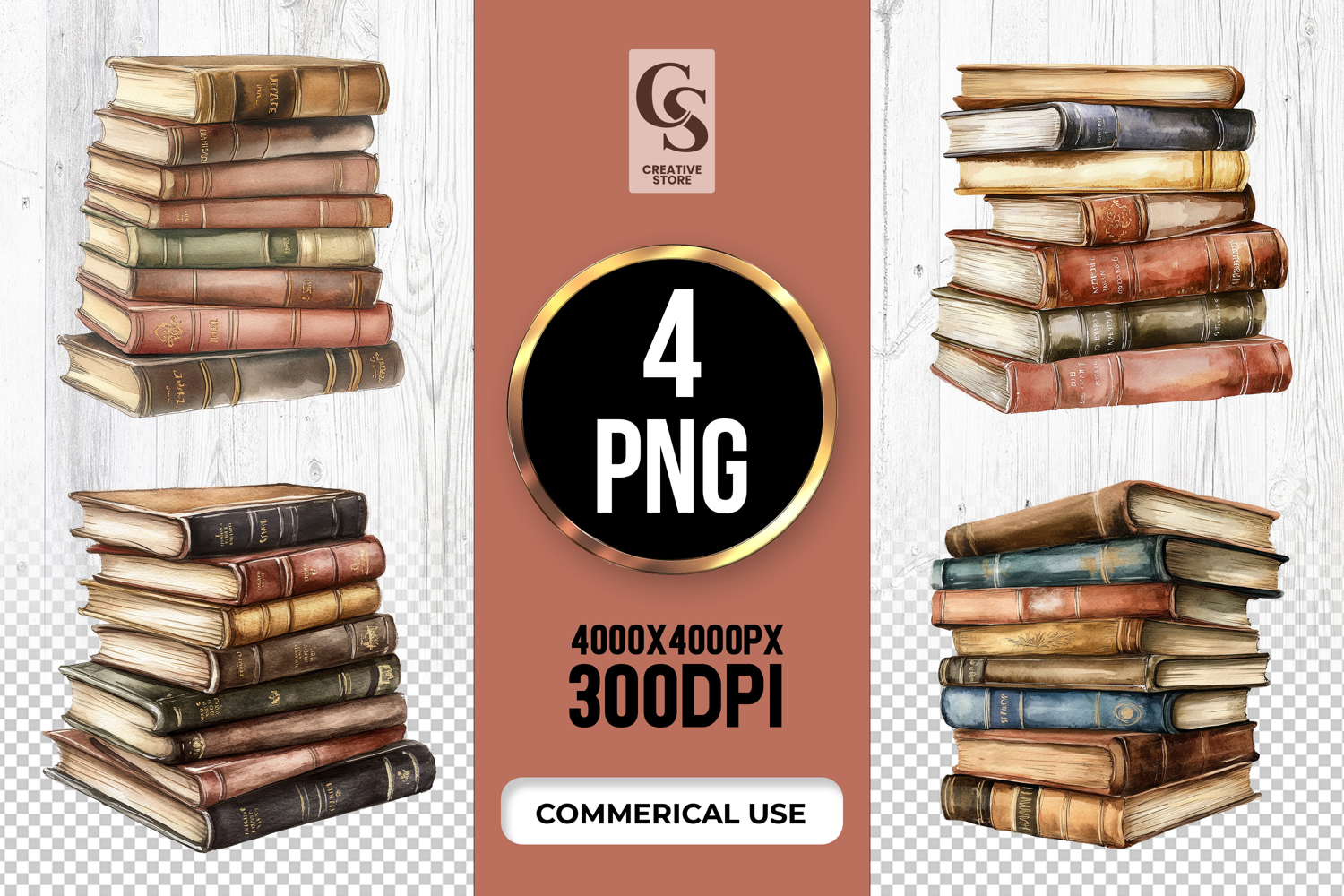 4 Antique Book Stack Clipart Sublimation PNG Files Perfect for Greeting Cards, Invitations, Junk Journal, Party Decor, Scrapbooking and many other craft projects.