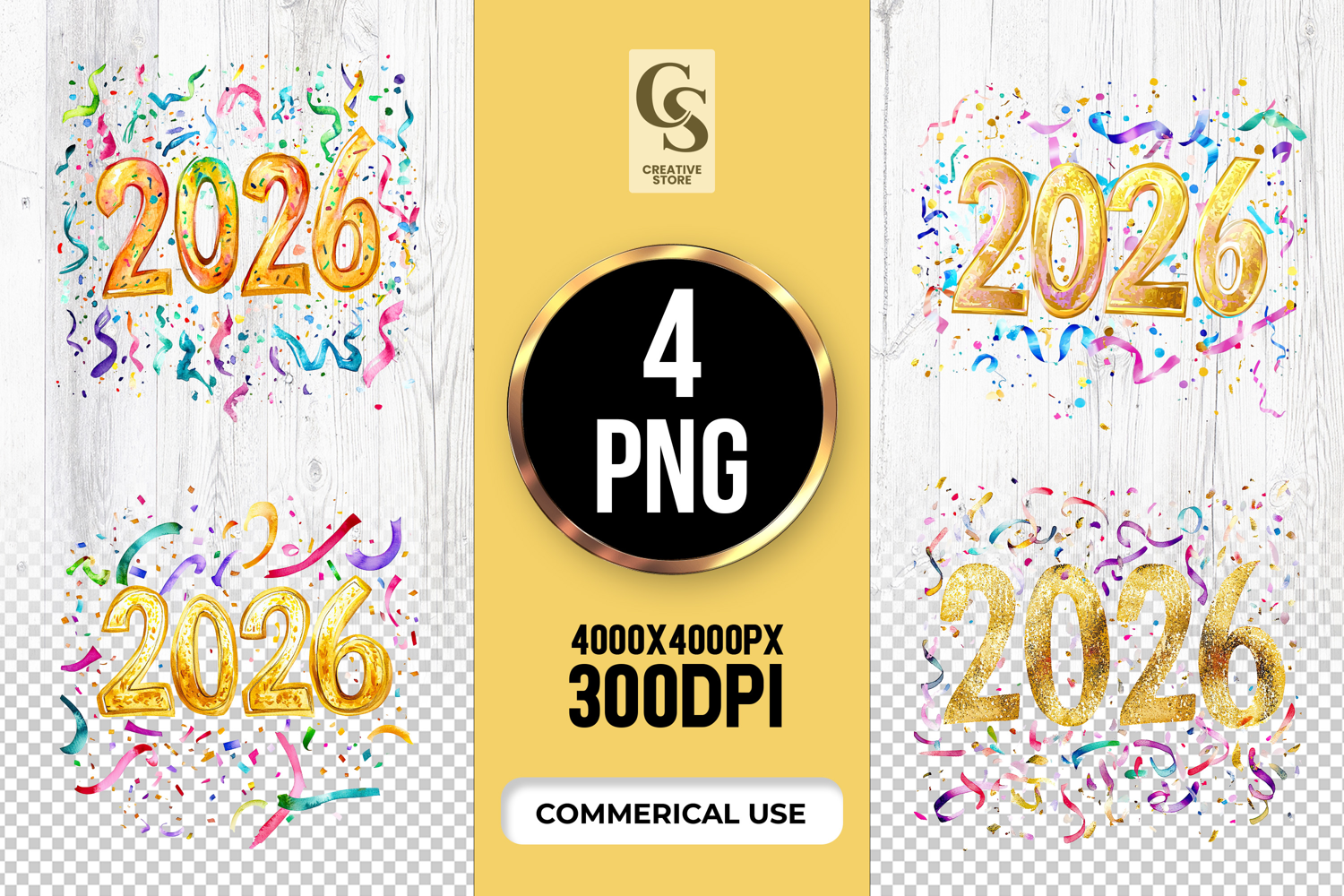 4 Gold Glitter 2026 Confetti Clipart PNG Files Perfect for Greeting Cards, Invitations, Junk Journal, Party Decor, Scrapbooking and many other craft projects.