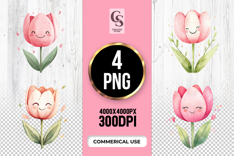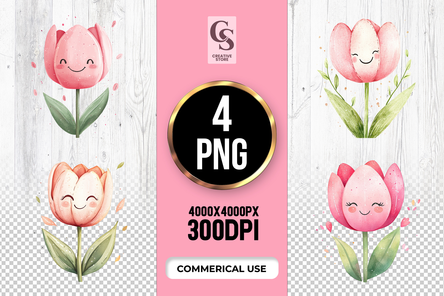 Spring Flower Clipart Watercolor Floral Sublimation Cute Flower Clipart Watercolor Tulip Png Tulip Flower Clipart Botanical Art Png Smiling Flower Png Floral Illustration Sublimation Happy Tulip Png Pink Tulip Sublimation