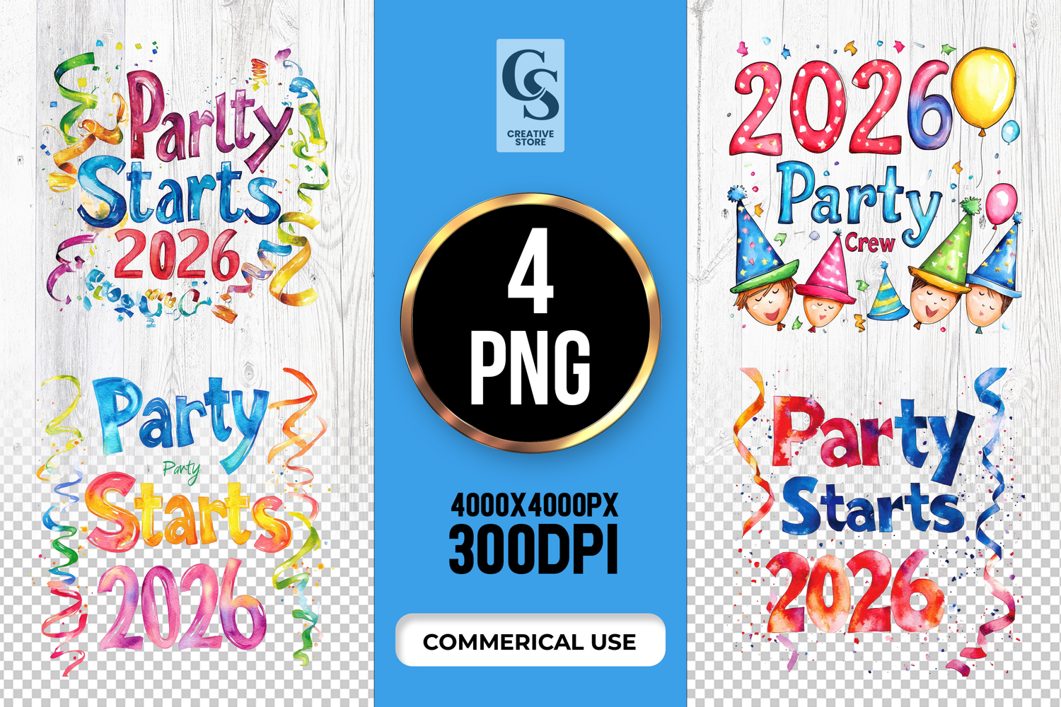 4 2026 Party Watercolor Clipart PNG Files Perfect for Greeting Cards, Invitations, Junk Journal, Party Decor, Scrapbooking and many other craft projects.