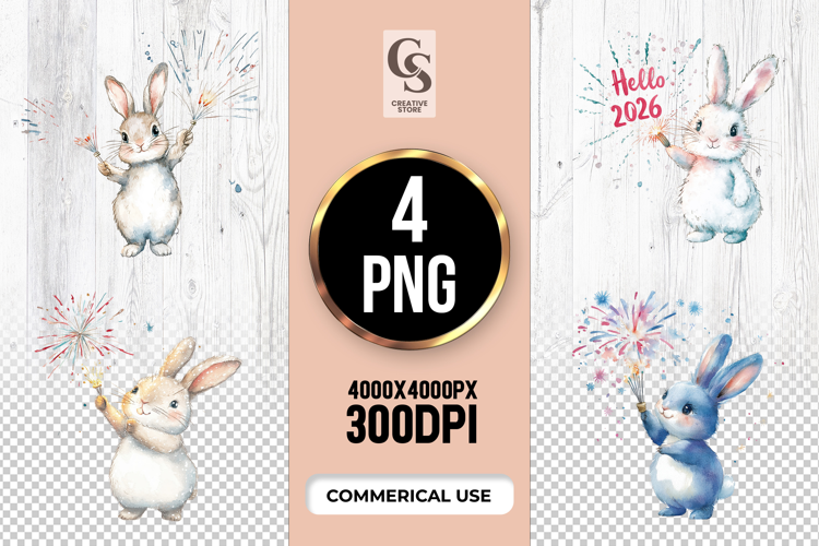Bunny Clipart Festive Rabbit Png Cute Rabbit Png Watercolor Bunny Art Hand Drawn Bunny Art Adorable Bunny Sublimation Happy 2026 Clipart Sparkler Firework Sublimation Celebration Firework Clipart New Year Bunny Png