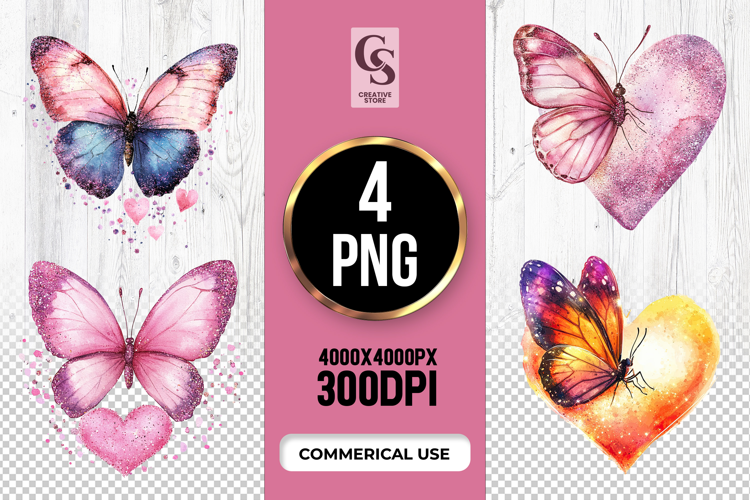 4 Butterfly Heart Art Clipart Sublimation PNG Files Perfect for Greeting Cards, Invitations, Junk Journal, Party Decor, Scrapbooking and many other craft projects.