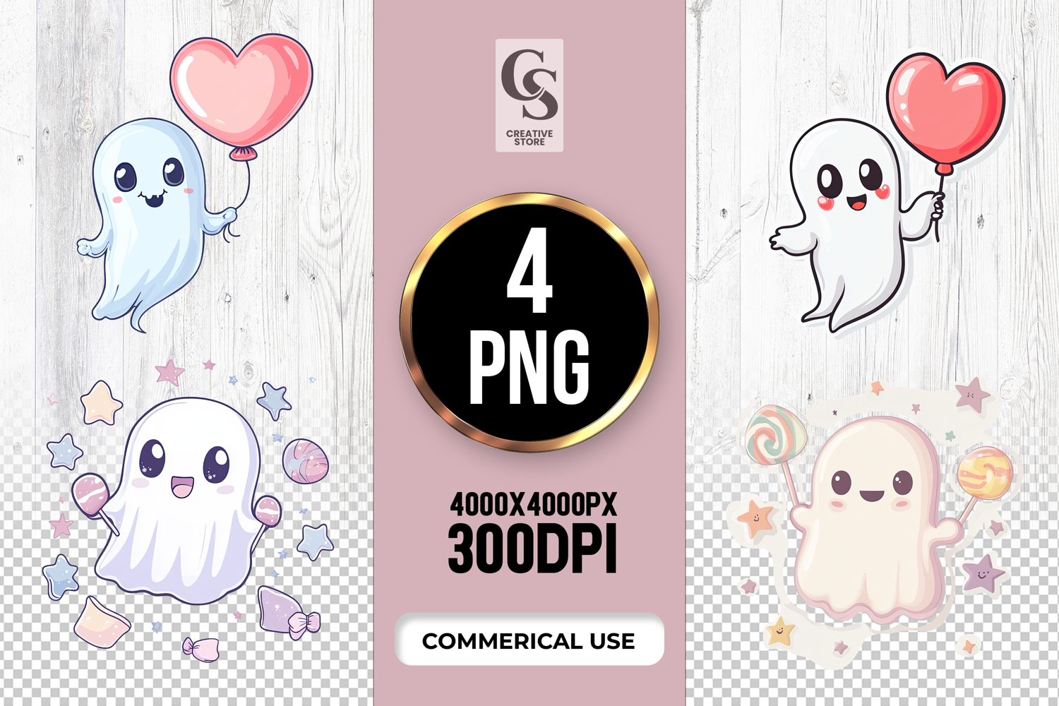 4 Cute Ghost with Balloon Clipart PNG Files Perfect for Greeting Cards, Invitations, Junk Journal, Party Decor, Scrapbooking and many other craft projects.