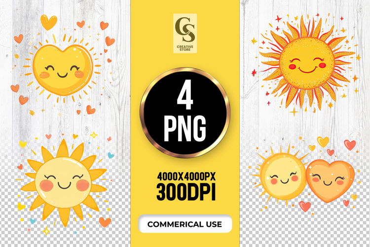 4 Cute Smiling Sun Clipart Sublimation PNG Files Perfect for Greeting Cards, Invitations, Junk Journal, Party Decor, Scrapbooking and many other craft projects.