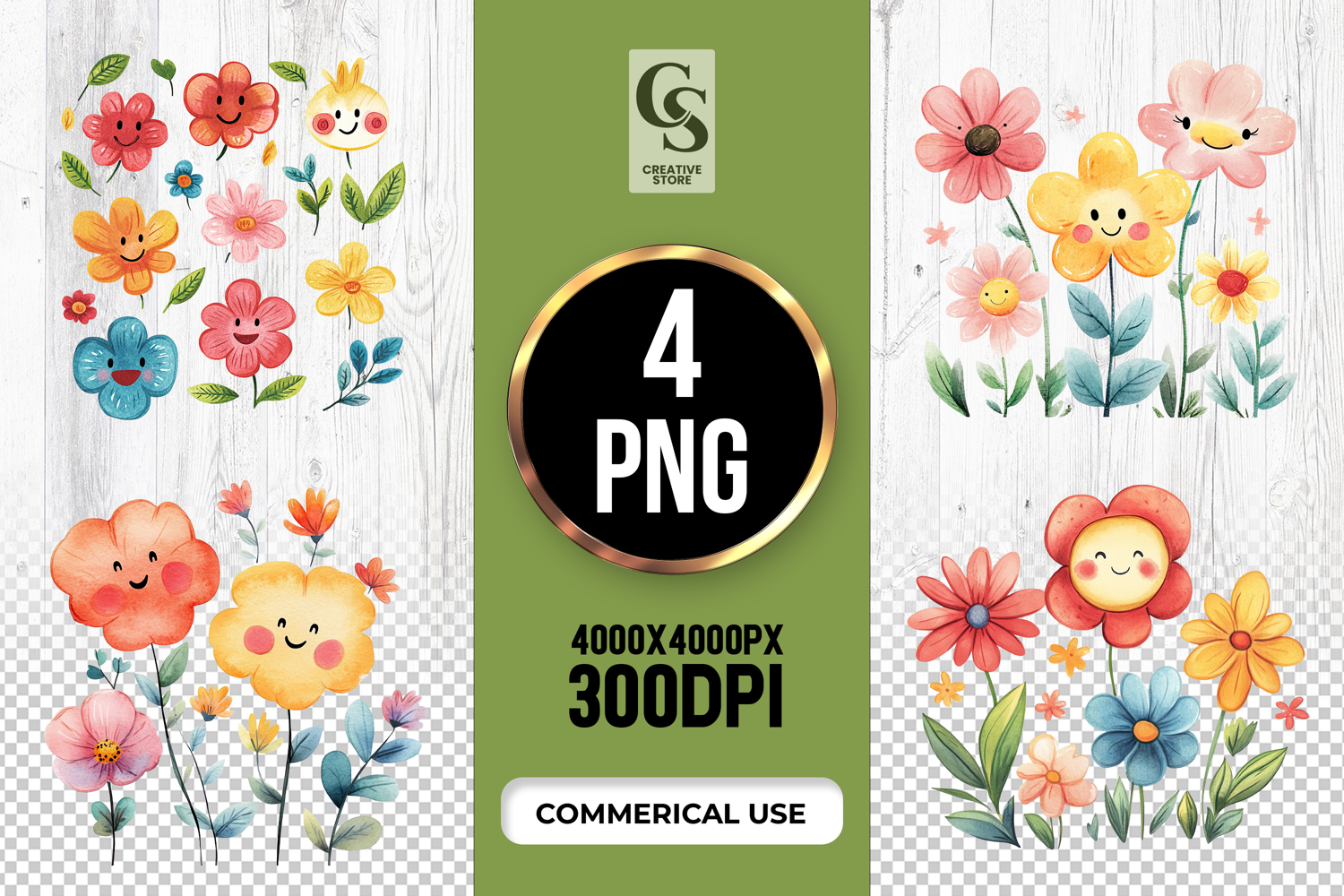 Flower Clipart Watercolor Flowers Flower Png Flower Sublimation Spring Flower Png Cute Floral Clipart Smiling Flower Png Happy Flower Art Colorful Bloom Clipart Adorable Floral Sublimation