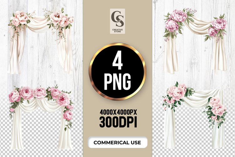 4 Elegant Floral Wedding Arch Clipart Sublimation PNG Files Perfect for Greeting Cards, Invitations, Junk Journal, Party Decor, Scrapbooking and many other craft projects.
