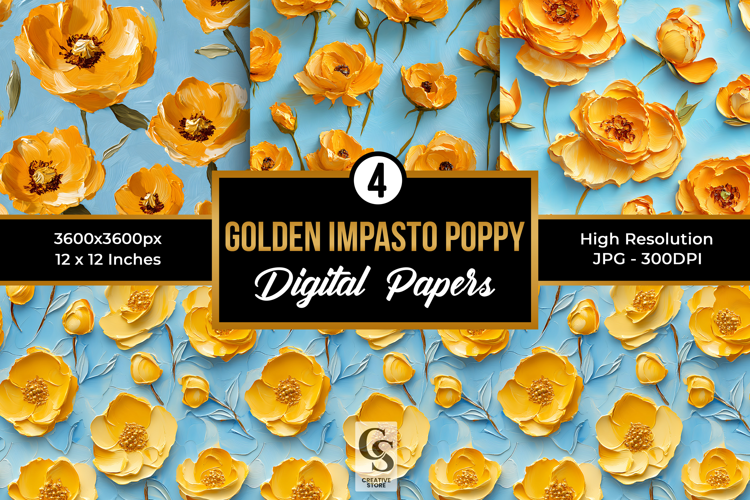 3D Impasto Painted Golden Poppies Pattern example image 1