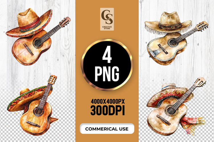 4 Mexican Guitar Sombrero Clipart Sublimation PNG Files Perfect for Greeting Cards, Invitations, Junk Journal, Party Decor, Scrapbooking and many other craft projects.