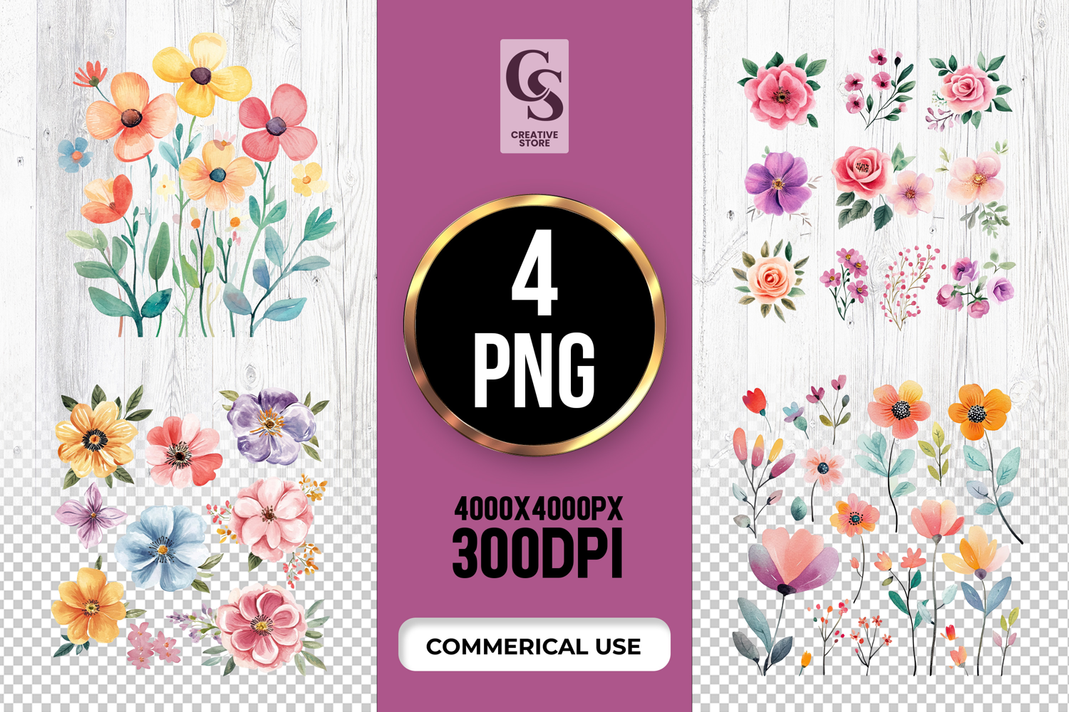 4 Anemone Rose Poppy Floral Clipart Sublimation PNG Files Perfect for Greeting Cards, Invitations, Junk Journal, Party Decor, Scrapbooking and many other craft projects.