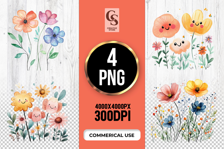 4 Cute Poppy Daisy Watercolor Clipart Sublimation PNG Files Perfect for Greeting Cards, Invitations, Junk Journal, Party Decor, Scrapbooking and many other craft projects.