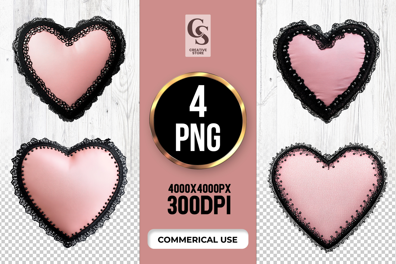 4 Pink Heart Lace Pillow clipart sublimation png Files Perfect for Greeting Cards, Invitations, Junk Journal, Party Decor, Scrapbooking and many other craft projects.