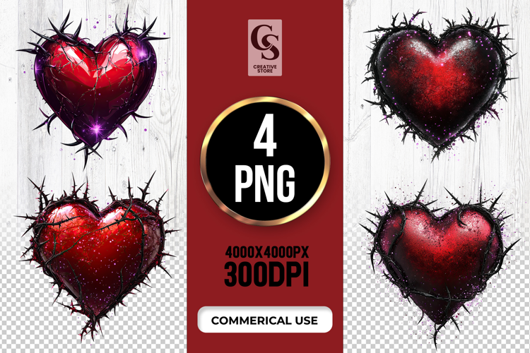 4 Dark Thorn Red Heart Clipart Sublimation PNG Files Perfect for Greeting Cards, Invitations, Junk Journal, Party Decor, Scrapbooking and many other craft projects.