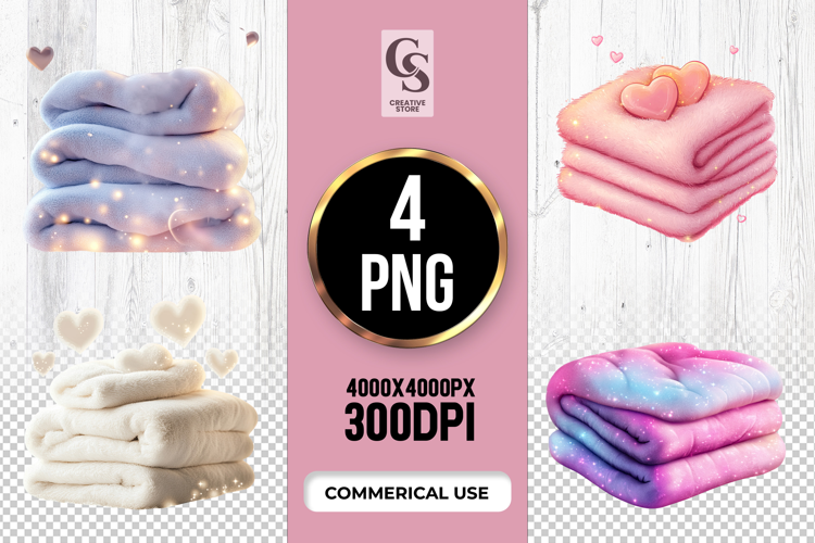 4 Cozy Soft Blanket Stack Clipart Sublimation PNG Files Perfect for Greeting Cards, Invitations, Junk Journal, Party Decor, Scrapbooking and many other craft projects.