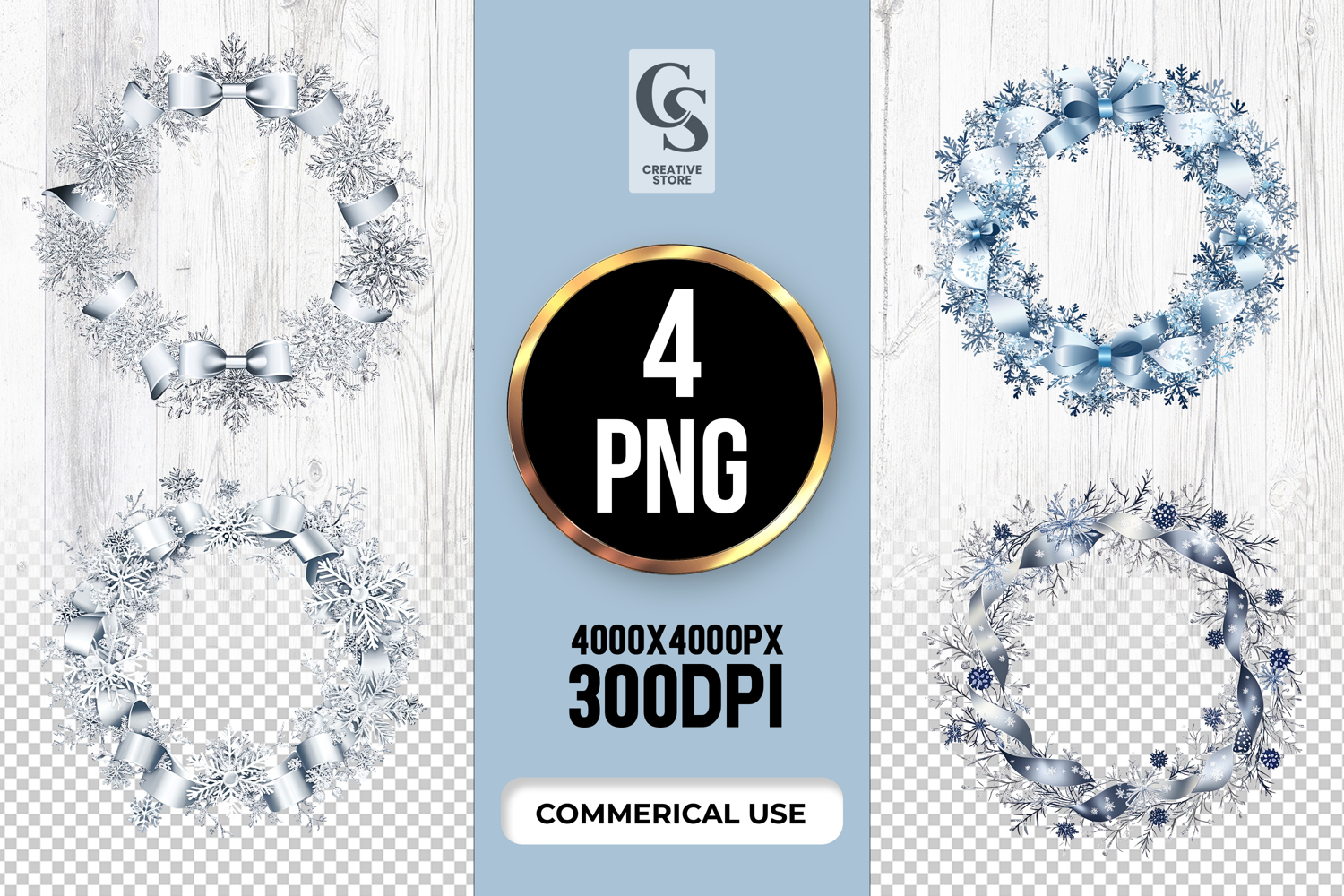 Silver Snowflake Winter Wreath Clipart Sublimation PNG example image 1
