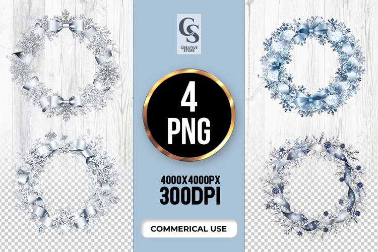 4 Silver Snowflake Winter Wreath Clipart Sublimation PNG Files Perfect for Greeting Cards, Invitations, Junk Journal, Party Decor, Scrapbooking and many other craft projects.