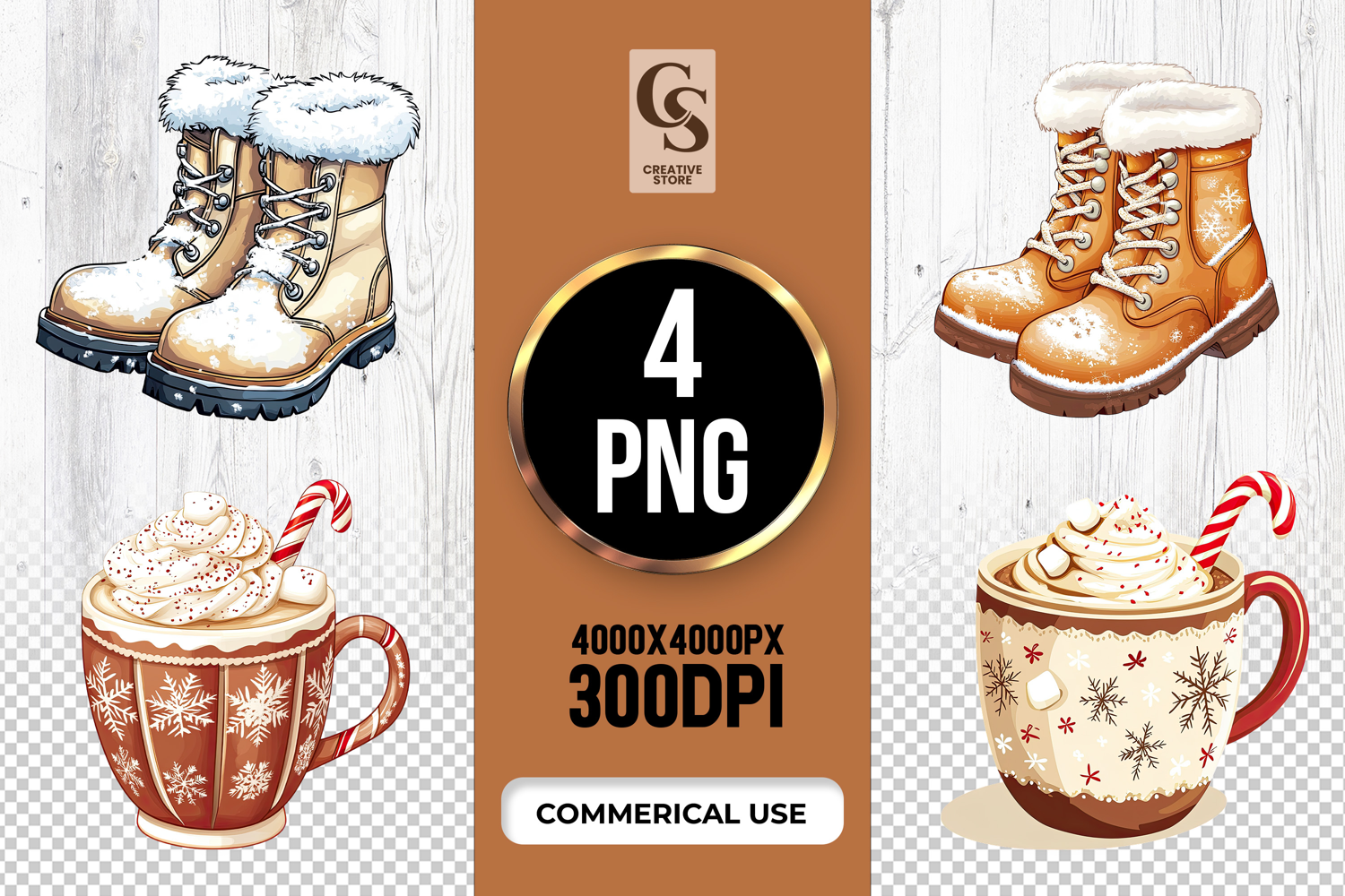 Winter Boots and Coffee Mug Clipart Sublimation PNG example image 1
