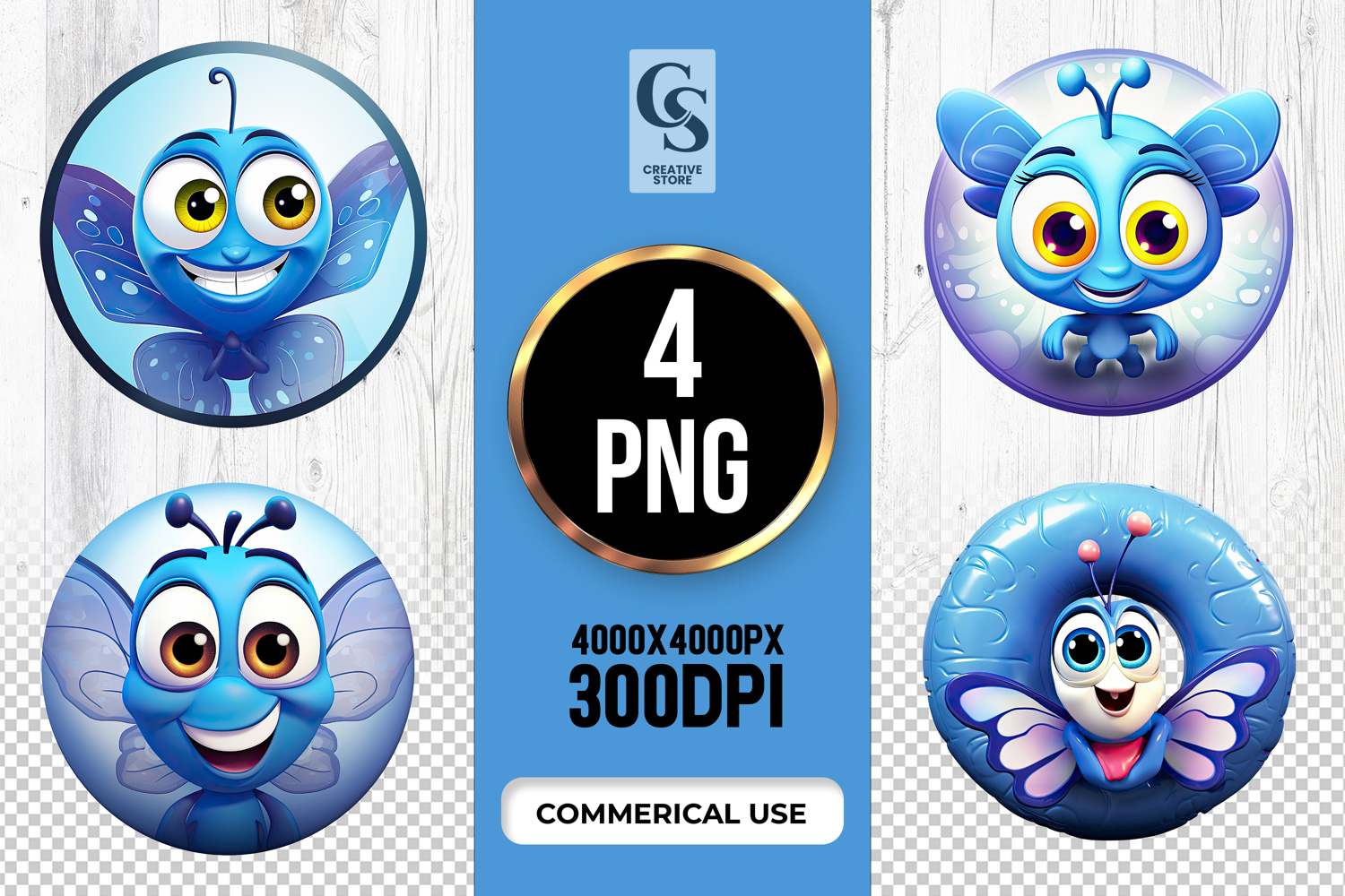 4 Cute Blue Butterfly Cartoon Clipart Sublimation PNG Files Perfect for Greeting Cards, Invitations, Junk Journal, Party Decor, Scrapbooking and many other craft projects.