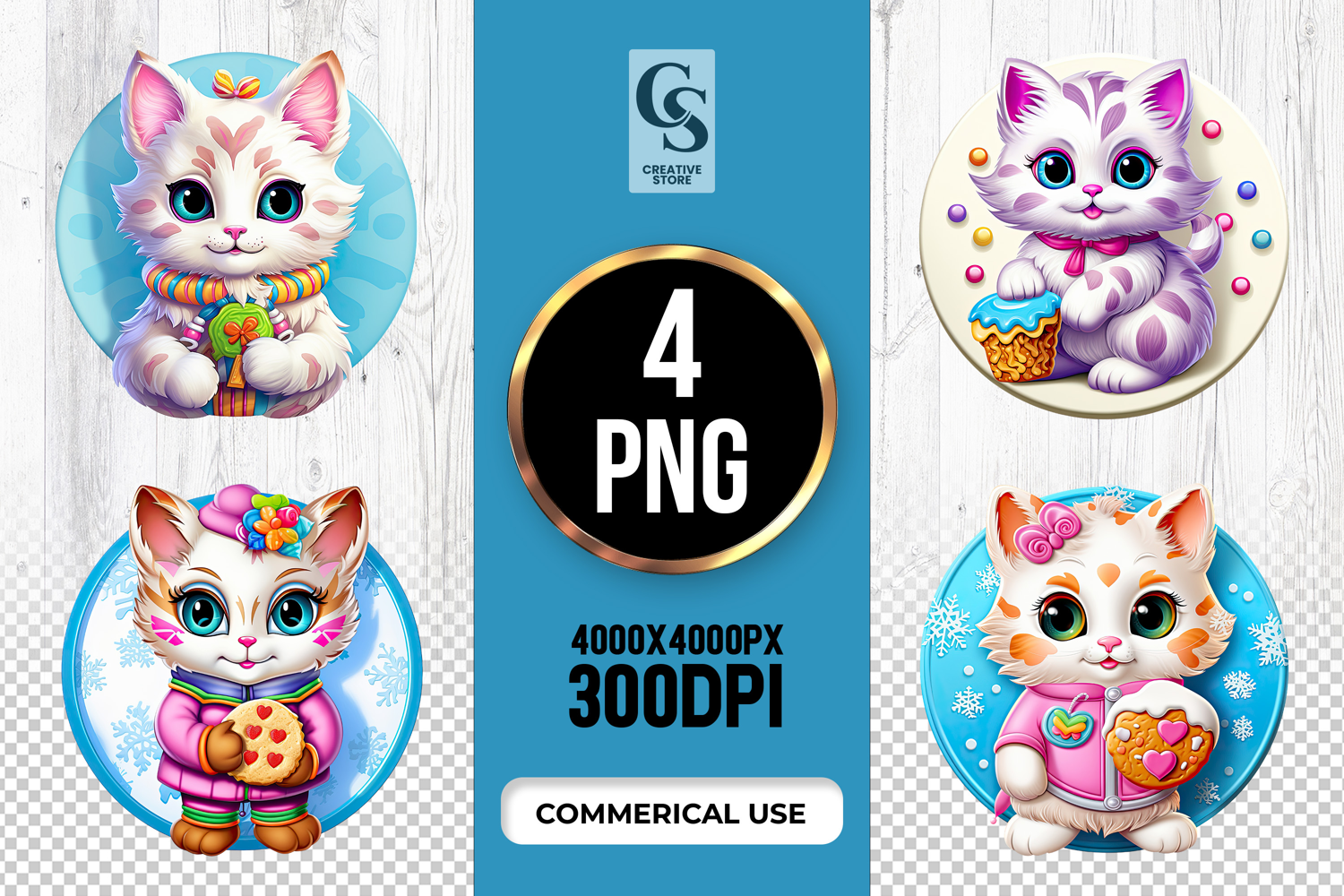 4 Cute Kitten With Cookie And Cupcake Clipart Sublimation PNG Files Perfect for Greeting Cards, Invitations, Junk Journal, Party Decor, Scrapbooking and many other craft projects.