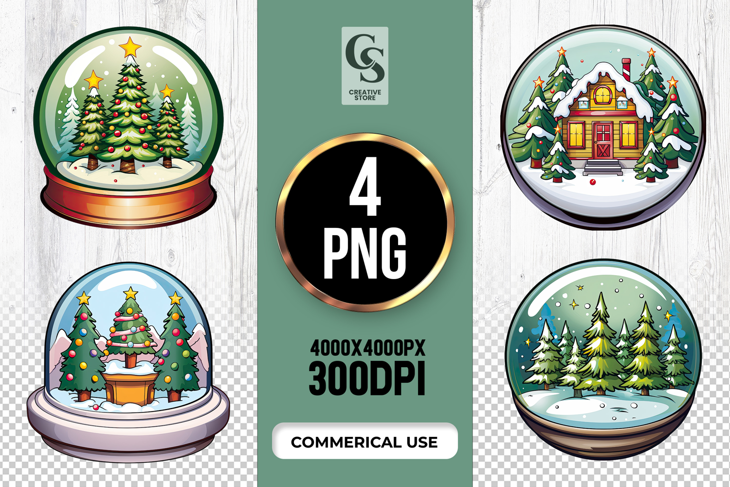 4 Snow Globe Winter Scene Cartoon Clipart Sublimation PNG Files Perfect for Greeting Cards, Invitations, Junk Journal, Party Decor, Scrapbooking and many other craft projects.