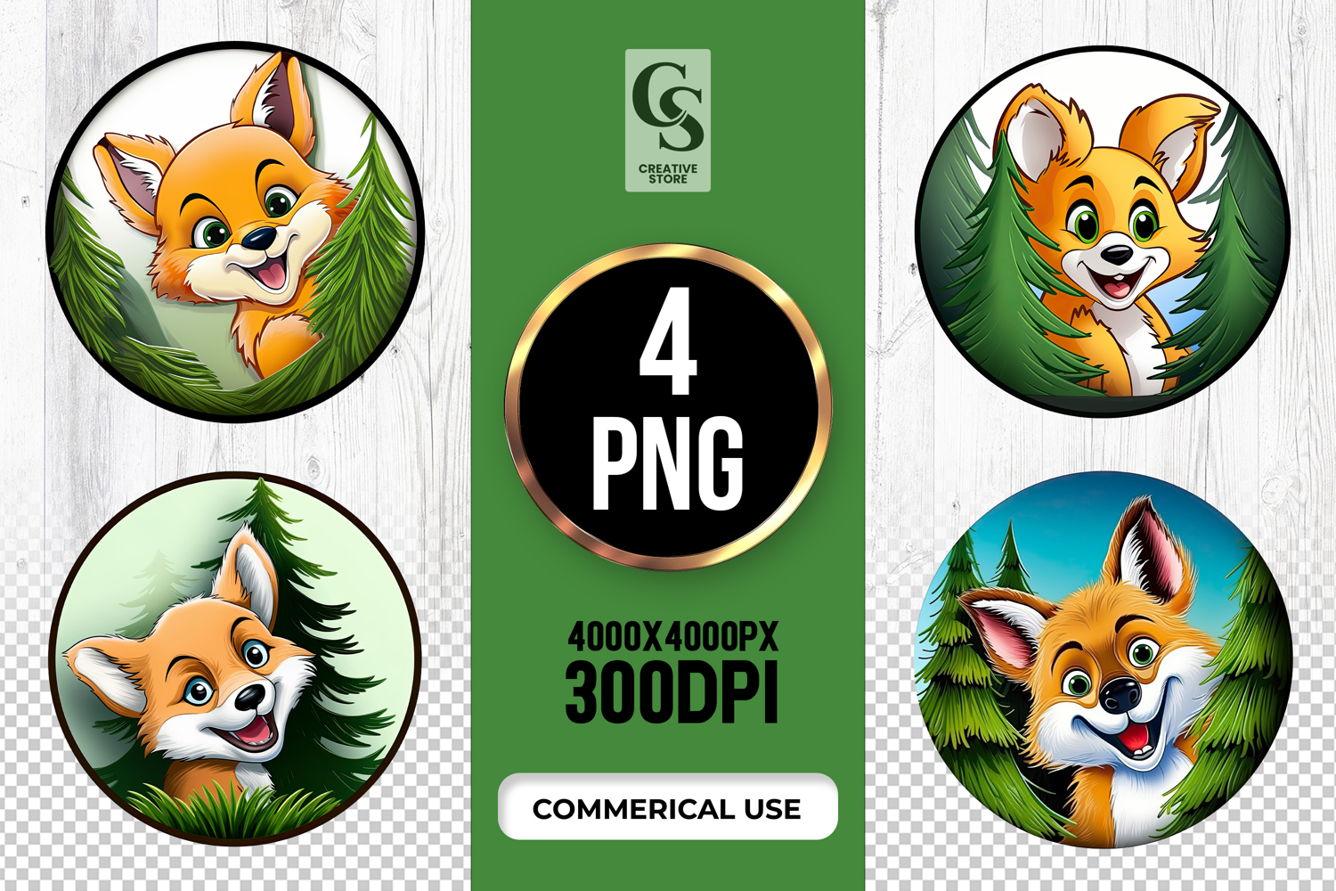 4 Cute Forest Fox Cartoon Clipart Sublimation PNG Files Perfect for Greeting Cards, Invitations, Junk Journal, Party Decor, Scrapbooking and many other craft projects.