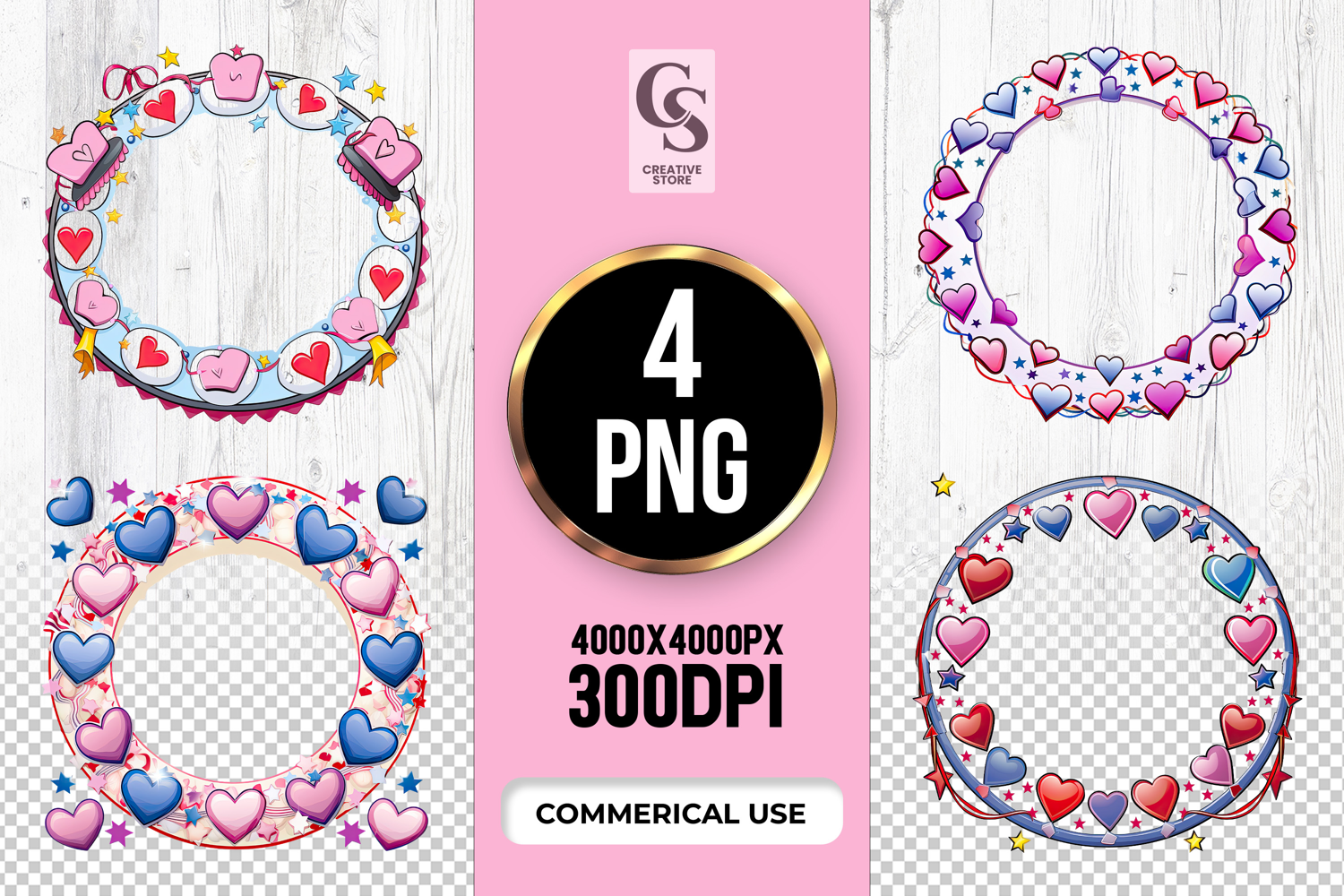 4 Colorful Heart Wreath Clipart Sublimation PNG Files Perfect for Greeting Cards, Invitations, Junk Journal, Party Decor, Scrapbooking and many other craft projects.