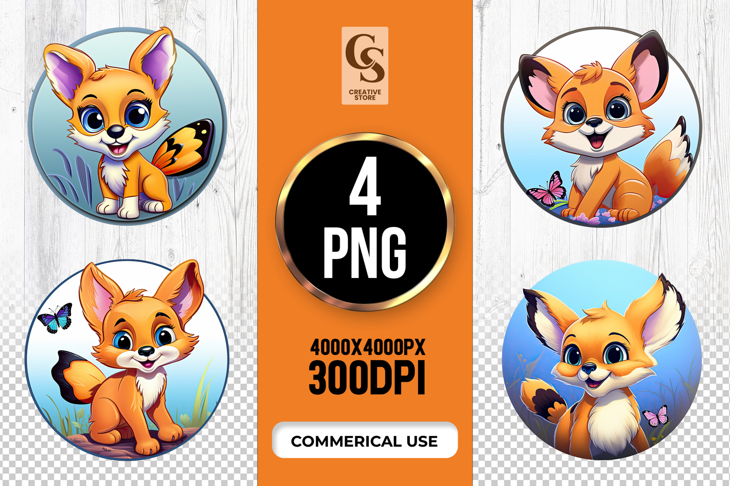 4 Cute Baby Fox and Butterfly Clipart Sublimation PNG Files Perfect for Greeting Cards, Invitations, Junk Journal, Party Decor, Scrapbooking and many other craft projects.