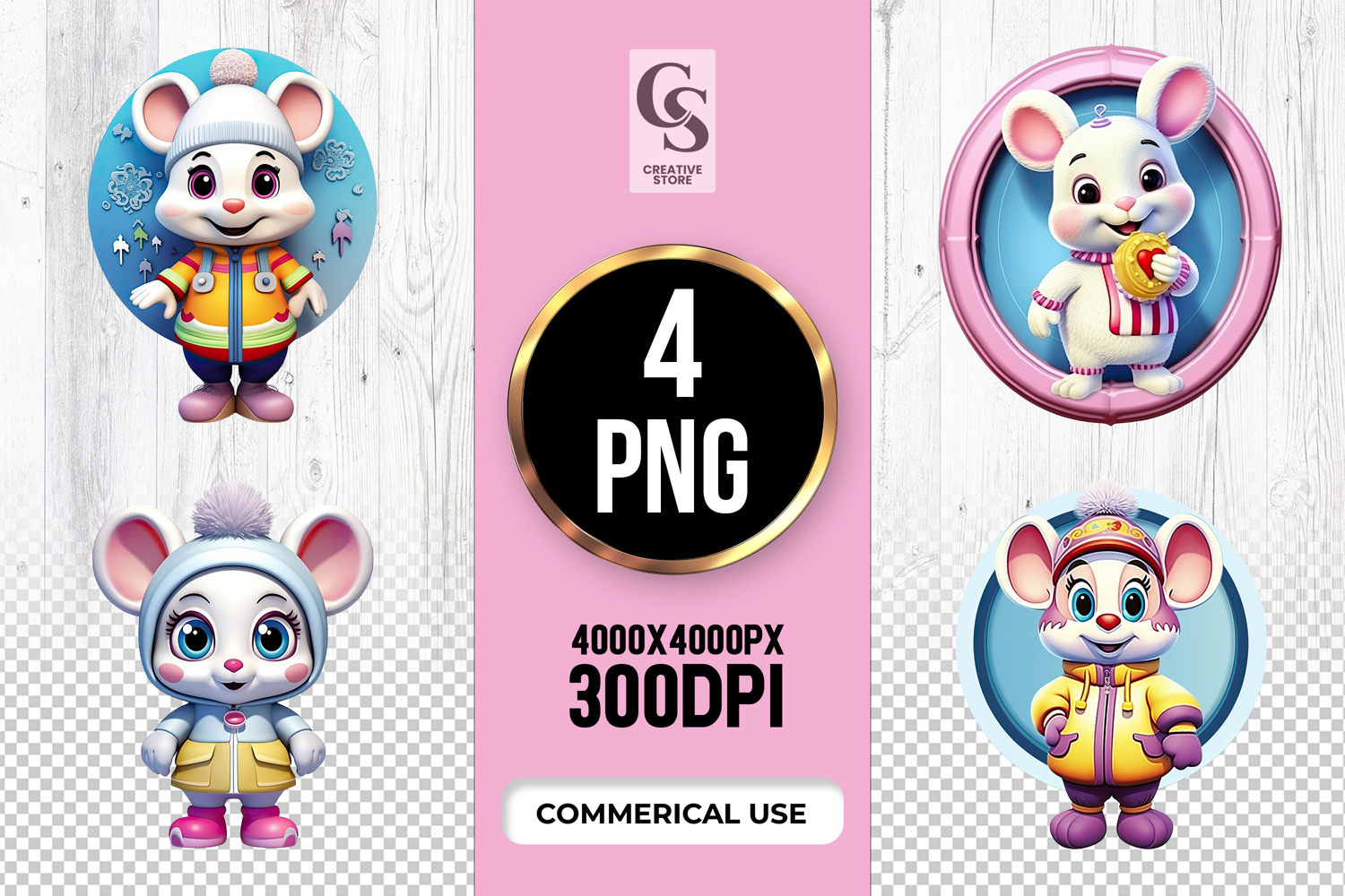 4 Cute Winter Mouse Clipart Sublimation PNG Files Perfect for Greeting Cards, Invitations, Junk Journal, Party Decor, Scrapbooking and many other craft projects.
