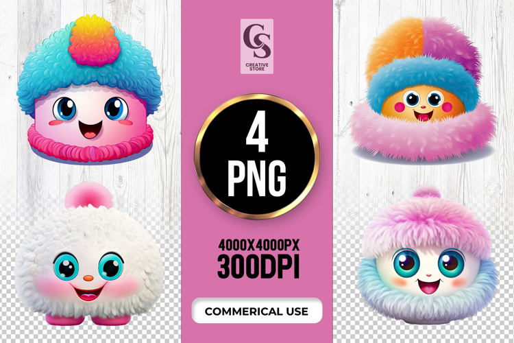 4 Adorable Fluffy Pom Hat Face Clipart Sublimation PNG Files Perfect for Greeting Cards, Invitations, Junk Journal, Party Decor, Scrapbooking and many other craft projects.