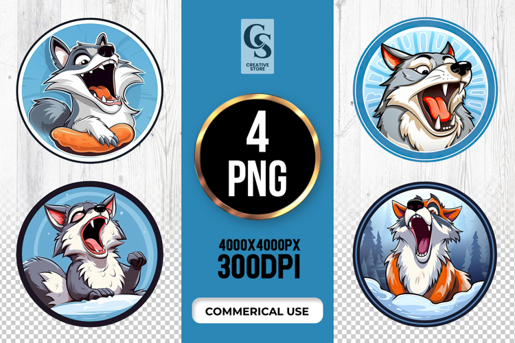 4 Cute Howling Wolf Clipart Sublimation PNG Files Perfect for Greeting Cards, Invitations, Junk Journal, Party Decor, Scrapbooking and many other craft projects.