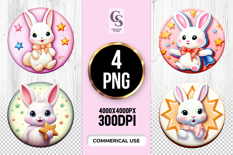 4 Cute Bunny With Stars Clipart Sublimation PNG Files Perfect for Greeting Cards, Invitations, Junk Journal, Party Decor, Scrapbooking and many other craft projects.
