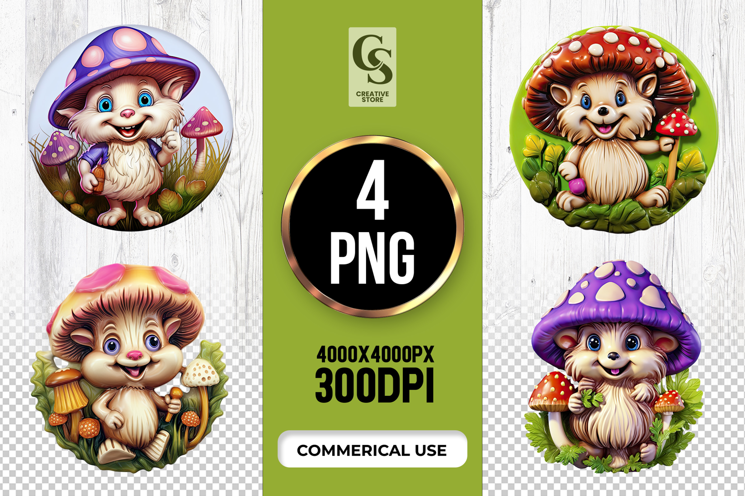 4 Adorable Hedgehog With Mushroom Clipart Sublimation PNG Files Perfect for Greeting Cards, Invitations, Junk Journal, Party Decor, Scrapbooking and many other craft projects.