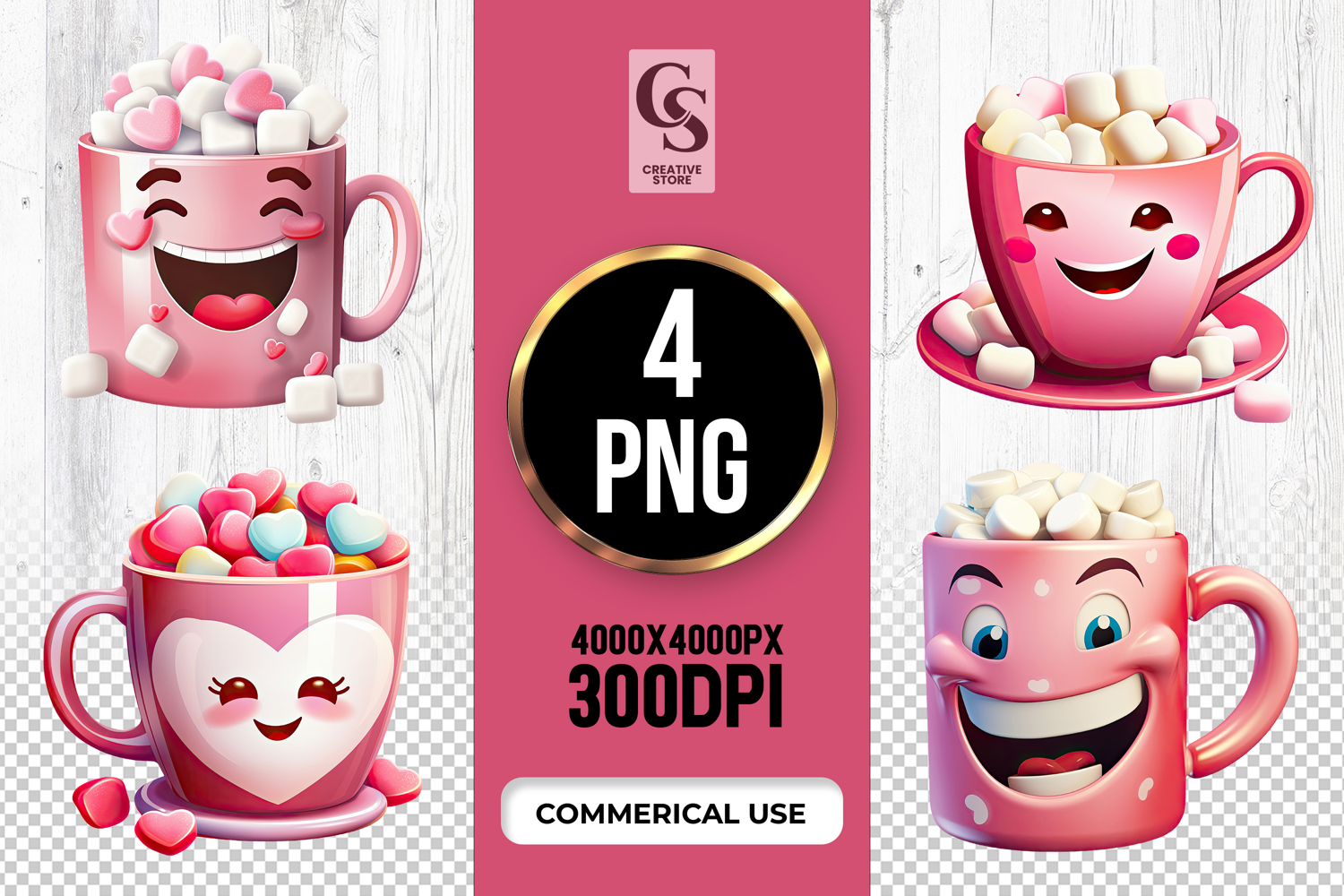 4 Cute Pink Mug With Marshmallow Clipart Sublimation PNG Files Perfect for Greeting Cards, Invitations, Junk Journal, Party Decor, Scrapbooking and many other craft projects.