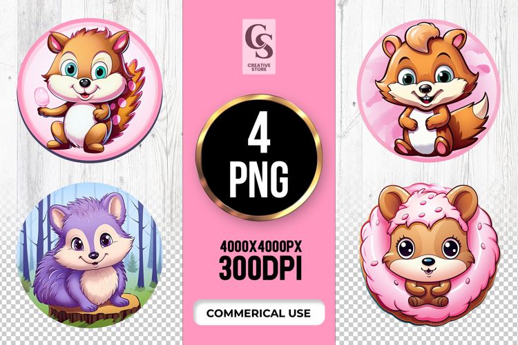 4 Cute Baby Squirrel Clipart Sublimation PNG Files Perfect for Greeting Cards, Invitations, Junk Journal, Party Decor, Scrapbooking and many other craft projects.